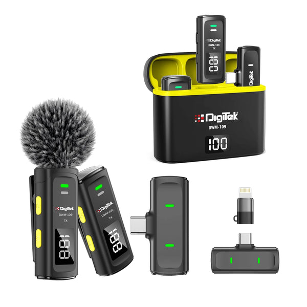 The Digitek DWM 109 2-in-1 Compact Multi-Functional Lavalier Wireless Microphone provides a flexible, high-quality audio solution for content creators, interviewers, educators, and professionals. With its 2-in-1 design, wireless freedom, advanced noise reduction, and broad device compatibility, this microphone system delivers clear, professional audio in a variety of settings. Whether you’re recording interviews, meetings, or vlogs, the DWM 109 ensures that your audio is sharp, reliable, and easy to capture.