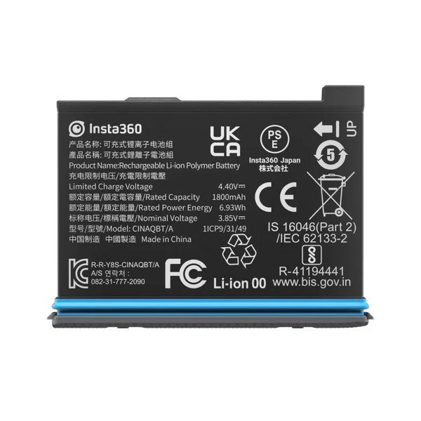 With this Rechargeable 1800mAh Battery from Insta360, you can power your X3 action camera. This battery ensures you can capture all the action for up to 81 minutes thanks to a 10% increase in capacity for a total of 1800mAh. For continued use, its lithium-ion chemistry can be recharged in just 90 minutes. A box for storing the battery that has space for memory cards is also included.